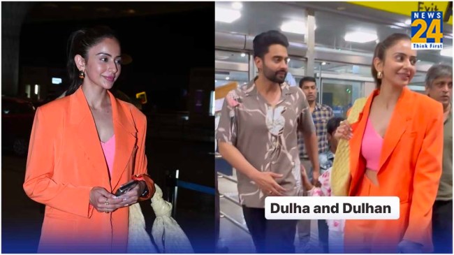 Rakul Preet Singh-Jackky Bhagnani Wedding: बॉलीवुड के क्यूट कपल रकुल प्रीत सिंह (Rakul Preet Singh) और जैकी भगनानी (Jackky Bhagnani) कुछ ही दिनों में ऑफिशियली पति-पत्नी बन जाएंगे। दोनों की शादी की तैयारियां शुरू हो चुकी हैं। इस बीच रकुल और जैकी भी अपनी वेडिंग डेस्टिनेशन गोवा पहुंच गए हैं। हाल ही में रकुल और जैकी का वीडियो सामने आया है, जिसमें उन्हें गोवा के लिए रवाना होते देखा गया। इस दौरान एक्ट्रेस ऑरेंज पेंट्स और ऑरेंज कोट में दिखाई दीं तो वहीं उनके होने वाले पति जैकी भगनानी फंकी शर्ट और पैंट में नजर आए। खास बात ये है कि होने वाले दूल्हा-दुल्हन को अपने कैमरे में कैप्चर करने के लिए जब पैपराजी पहुंची तो एक्ट्रेस शरमा गईं। उनके चेहरे पर प्री वेडिंग ग्लो साफ दिखाई दिया। रकुल के साथ उनके मम्मी-पापा को भी स्पॉट किया गया। बिटिया रानी की शादी की खुशी दोनों के चेहरे से साफ झलक रही थी। गौरतलब है कि रकुल और जैकी 21 फरवरी को शादी के बंधन में बंध जाएंगे। दोनों के प्री-वेडिंग फंक्शन 19 फरवरी से शुरू होंगे। शादी के अगले दिन 22 फरवरी को कपल मुंबई में ग्रैंड रिसेप्शन रखने वाला है, जिसमें बॉलीवुड और टॉलीवुड इंडस्ट्री की कई बड़ी हस्तियां शामिल होंगी।