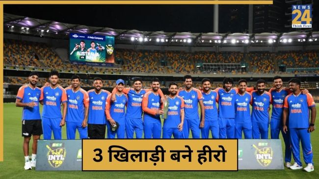 India vs Australia: भारत और ऑस्ट्रेलिया के बीच 5 मैचों की टी-20 सीरीज खेली गई थी. इस सीरीज में भारत ने शानदार खेल दिखाते हुए 2 मैच अपने नाम किया. आखिरी मुकाबला खराब मौसम की वजह से रद्द हो गया. ऐसे में भारत ने 2-1 से सीरीज अपने नाम की. आखिरी मुकाबले में 3 खिलाड़ी हीरो बने. भारत की ओर से शुभमन गिल और अभिषेक शर्मा ने टीम को शानदार शुरुआत दिलाई थी. अभिषेक शर्मा 13 गेंदों में 23 और गिल 16 गेंदों में 29 रन बनाकर नाबाद थे. इस दौरान खराब मौसम की वजह से खेल रोक दिया गया और अंत में मुकाबला रद्द कर दिया गया.