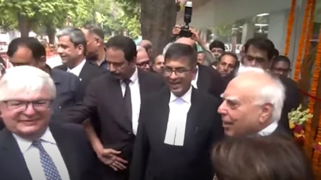 CJI DY Chandrachud Praised Kapil Sibbal: भारत केे मुख्य न्यायाधीश डीवाई चंद्रचूड़ ने शुक्रवार को सुप्रीम कोर्ट की मुख्य इमारत के सामने एक बहु सुविधा केंद्र का उद्घाटन किया। इस दौरान ब्राजील की सुप्रीम कोर्ट के जज एंटोनियो बेंजामिन भी मौजूद रहे। सुविधा केंद्र का उद्घाटन करने से पहले का एक वीडियो सोशल मीडिया पर जमकर वायरल हो रहा है। वायरल वीडियो में सीजेआई चंद्रचूड़ ब्राजील के जज की मुलाकात वरिष्ठ वकील कपिल सिब्बल से करवाते हैं। इस दौरान कपिल का परिचय करवाते हुए सीजेआई ने कहा कि इनसे मिलिए ये सुप्रीम कोर्ट बार एसोसिएशन के अध्यक्ष कपिल सिब्बल है। इसके अलावा वे संसद के सदस्य भी हैं। इस दौरान ब्राजील के जज ने वहां मौजूद सभी लोगों का धन्यवाद दिया।
