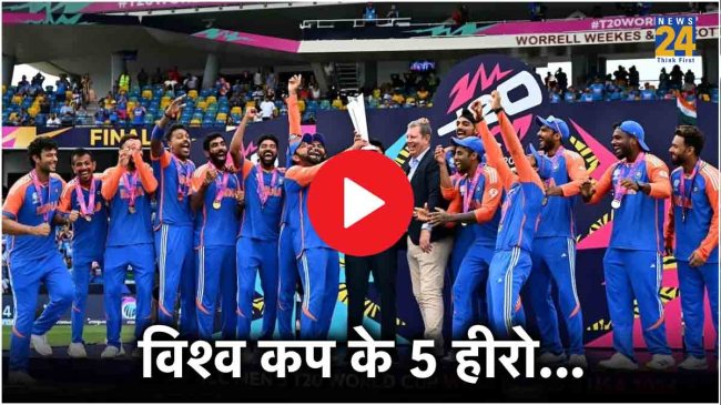 T20 World Cup 2024 IND vs SA Final: भारतीय टीम फाइनल में साउथ अफ्रीका को हराकर दूसरी बार टी20 विश्व कप की चैंपियन बन गई है। इस टीम इंडिया के कप्तान रोहित शर्मा थे। इस विश्व कप में टीम इंडिया का प्रदर्शन काफी शानदार रहा और रोहित एंड कंपनी एक मैच नहीं हारी। इस विश्व कप में टीम इंडिया के 5 खिलाड़ी ऐसे रहे, जिन्होंने पूरे टूर्नामेंट में कमाल का प्रदर्शन करके भारत को चैंपियन बनाने में अहम भूमिका निभाई है।