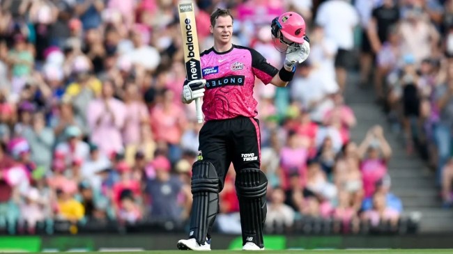 BBL 2024-25: स्टीव स्मिथ ने बॉर्डर-गावस्कर ट्रॉफी 2023-24 में शानदार प्रदर्शन किया था। वहीं, अब उन्होंने बिग बैश लीग (BBL) 2024-25 में धमाल मचा दिया है। उन्होंने पहले ही मैच में शतक ठोक दिया है। सिडनी सिक्सर्स की ओर से खेलते हुए स्मिथ ने महज 58 गेंदों पर शतक बना दिया। उन्होंने 64 गेंदों पर 10 चौके और 7 छक्कों की मदद से 121 रन बनाकर नाबाद लौटे। इस दौरान उन्होंने एक बड़ा कारनामा कर दिया है।