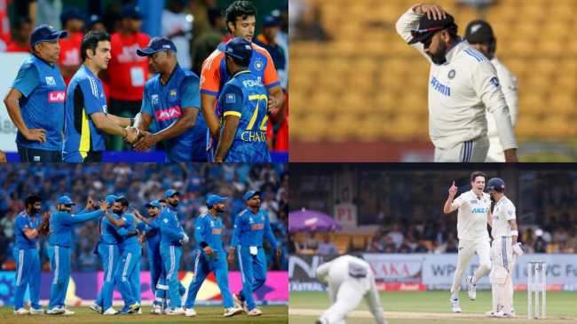 Year Ender 2024: टीम इंडिया इस साल बेशक रोहित शर्मा की कप्तानी में 17 साल बाद टी-20 वर्ल्ड कप जीतने में सफल रही, लेकिन इसके अलावा टीम को एक के बाद एक कई झटके मिले। ये झटके ऐसे हैं, जिसे टीम इंडिया और भारतीय फैंस भुलाने से भी नहीं भुला पाएंगे। इसमें 27 साल बाद श्रीलंका टीम से वनडे सीरीज हारना, 45 साल में पहली बार साल में एक भी वनडे नहीं जीतना, तीन मैचों की घरेलू टेस्ट सीरीज में व्हाइटवॉश और घर में टेस्ट मैच में सबसे कम स्कोर पर आउट होना जैसे कई अनचाहे रिकॉर्ड्स शामिल हैं।