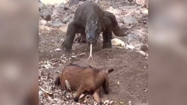 рдЗрдВрдЯрд░рдиреЗрдЯ рдкрд░ рдРрд╕реЗ рдмрд╣реБрдд рд╕реЗ рд╡реАрдбрд┐рдпреЛ рд╣реИрдВ, рдЬрд┐рдирдореЗрдВ рдмрдбрд╝реЗ рд╢рд┐рдХрд╛рд░рд┐рдпреЛрдВ рдХреЛ рдЬрдВрдЧрд▓ рдореЗрдВ рдЬрд╛рдирд╡рд░реЛрдВ рдХрд╛ рд╢рд┐рдХрд╛рд░ рдХрд░рддреЗ рд╣реБрдП рджрд┐рдЦрд╛рдпрд╛ рдЧрдпрд╛ рд╣реИред рдЕрдм, рдПрдХ рдХреЛрдореЛрдбреЛ рдбреНрд░реИрдЧрди рдХрд╛ рдПрдХ рдмрдХрд░реА рдкрд░ рд╣рдорд▓рд╛ рдХрд░рдиреЗ рдФрд░ рдлрд┐рд░ рдЙрд╕реЗ рдкреВрд░рд╛ рдирд┐рдЧрд▓рдиреЗ рдХрд╛ рдПрдХ рднрдпрд╛рдирдХ рд╡реАрдбрд┐рдпреЛ рд╕рд╛рдордиреЗ рдЖрдпрд╛ рд╣реИред рдпреЗ рд╡реАрдбрд┐рдпреЛ рдЗрддрдирд╛ рд╡реАрднрддреНрд╕ рд╣реИ рдХрд┐ рдЗрд╕реЗ рджреЗрдЦрдиреЗ рдХреЗ рдмрд╛рдж рдХреБрдЫ рд▓реЛрдЧ рдкрд░реЗрд╢рд╛рди рд╣реЛ рд╕рдХрддреЗ рд╣реИрдВред