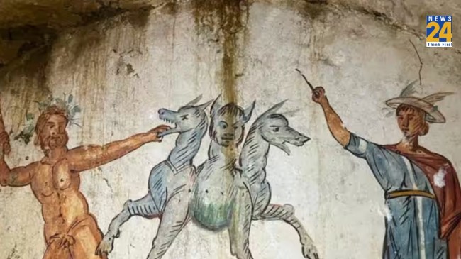 A 2,000-year-old Tomb of Cerberus uncovered in Italy: इटली में एक सीलबंद 2,000 साल पुराने मकबरा को खोला, इसमें प्राचीन ग्रीक पौराणिक कथाओं के तीन सिर वाले कुत्ते सेर्बेरस का एक भित्तिचित्र मिला है। आर्कियोलॉजिस्ट ने नेपल्स के उपनगर गिउग्लिआनो में दफन चेंबर की खोज की, जो लगभग 2,000 वर्ष पुराना माना जाता है।