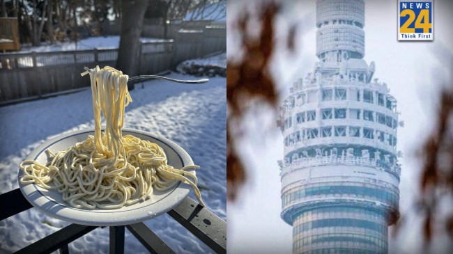 वहीं, आर्कटिक से आई बर्फीली हवाओं ने रूस के शहरों को बर्फ से बुरी तरह से दिया है. राजधानी मॉस्को में भीषण ठंड पड़ रही है और यहां का तापमान -28 डिग्री तक नीचे चला गया है. इस दौरान रूस की एक बड़ी और ऊंची इमारत की फोटो और वीडियो सोशल मीडिया पर जमकर वायरल हो रही है. सोशल मीडिया पर वायरल इन तस्वीरों और वीडियो में ये इमारत कुल्फी की तरह जमी हुई दिखाई दे रही है.