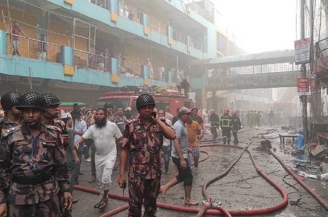 रिपोर्ट्स के मुताबिक, कपड़ों के एक लोकप्रिय बाजार के आंशिक रूप से नष्ट हो जाने के कुछ दिनों बाद शनिवार को यहां के न्यूमार्केट और ढाका कॉलेज के बीच शॉपिंग सेंटर में भीषण आग लग गई। आग पर काबू पाने के लिए तीनों सेनाओं को काफी मशक्कत का सामना करना पड़ रहा है।