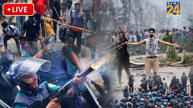 Bangladesh Protest : बांग्लादेश में हिंसा थमने का नाम नहीं ले रही है. ढाका में बुधवार रात एक बम विस्फोट हुआ. इसमें एक युवक की जान चली गई. इसके बाद इलाके में फिर तनाव हो गया. विस्फोट के बाद गुस्साई भीड़ ने ढाका यूनिवर्सिटी में भी तोड़फोड़ की. इस दौरान यूनिवर्सिटी में धार्मिक नारे लगाए गए और काजी नजरुल इस्लाम की कविताएं पढ़ी गईं. भीड़ ने ‘अल्लाहु अकबर’ के नारे लगते हुए और नजरुल की कविता ‘चंद्रभांदर तोमारे ज्वाला मुक्ति’ बोलते हुए तोड़फोड़ शुरू कर दी. पुलिस ने मामला दर्ज कर जांच शुरू कर दी है. छात्रों ने इसे इतिहास पर प्रहार बताया है.