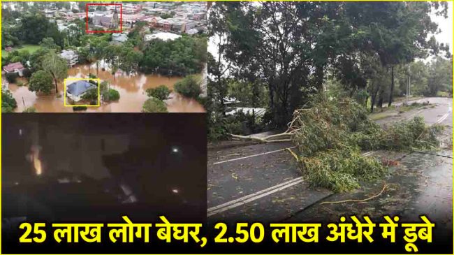 Cyclone Alfred Landfall in Australia: प्रशांत महासागर में उठा चक्रवाती तूफान शनिवार सुबह करीब 6 बजे ऑस्ट्रेलिया पहुंच और ब्रिस्बेन के पास मोरेटन बे द्वीप से टकराया। इसके बाद तूफान ब्रिबी द्वीप की ओर बढ़ रहा है। इसके कारण जहां 100 किलोमीटर प्रति घंटे की रफ्तार से हवाएं चल रही हैं, वहीं भारी बारिश हो रही है। तूफानी हवाएं चलने से पेड़ गिरने से बिजली की तारें टूट गईं। करीब 250000 लोग अंधेरे में डूबे हुए हैं। कई इलाकों में बाढ़ आ गई है।