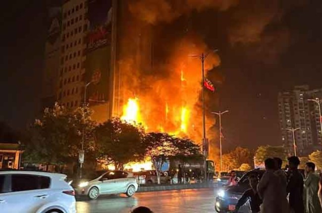 जियो न्यूज ने सूत्रों के हवाले से बताया कि आग की लपटें जिसे फायर टेंडर्स द्वारा थर्ड-डिग्री के रूप में रेट किया गया था, इमारत के शीर्ष पर एक बिलबोर्ड पर शुरू हुई और बाद में पूरी इमारत को अपनी चपेट में ले लिया। आग बुझाने के प्रयास में सबसे पहले दमकल की तीन गाड़ियां मौके पर पहुंचीं। मुख्य दमकल अधिकारी ने कहा कि आग पर काफी हद तक काबू पा लिया गया है।