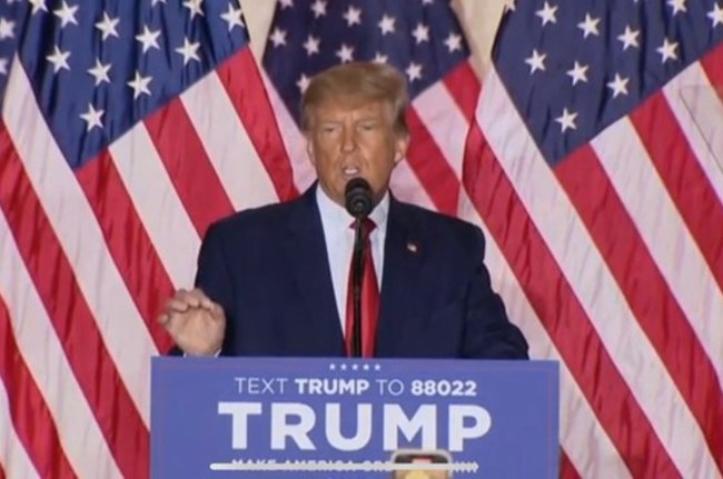 Former US President Donald Trump announces his bid for the 2024 presidency post