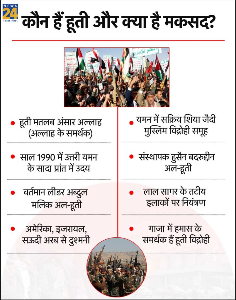 рдмрддрд╛ рджреЗрдВ рдХрд┐ рд╣реВрддреА рд╡рд┐рджреНрд░реЛрд╣рд┐рдпреЛрдВ рдиреЗ рд▓рд╛рд▓ рд╕рд╛рдЧрд░ рдореЗрдВ рдЖрддрдВрдХ рдордЪрд╛ рд╣реБрдЖ рд╣реИред рд╡реЗ рд▓рд╛рд▓ рд╕рд╛рдЧрд░ рд╕реЗ рдЧреБрдЬрд░рдиреЗ рд╡рд╛рд▓реЗ рд╕рдореБрджреНрд░реА рдЬрд╣рд╛рдЬреЛрдВ рдкрд░ рд╣рдорд▓рд╛ рдХрд░рддреЗ рд╣реИрдВред рд╣реВрддреА рд╡рд┐рджреНрд░реЛрд╣рд┐рдпреЛрдВ рдиреЗ рд╣рд╛рд▓ рд╣реА рдореЗрдВ рд▓рд╛рд▓ рд╕рд╛рдЧрд░ рдореЗрдВ рдЗрдЬрд░рд╛рдпрд▓ рдХреЗ рдХрдорд░реНрд╢рд┐рдпрд▓ рд╢рд┐рдк рдкрд░ рд╣рдорд▓рд╛ рдХрд┐рдпрд╛ рдерд╛ред рдЬрд╡рд╛рдмреА рдХрд╛рд░реНрд░рд╡рд╛рдИ рдХрд░рддреЗ рд╣реБрдП рдЗрдЬрд░рд╛рдпрд▓ рдХреА рд╕реЗрдирд╛ рдиреЗ рдпрдорди рдХреА рд░рд╛рдЬрдзрд╛рдиреА рд╕рдирд╛ рдФрд░ рд╣реЛрджреЗрджрд╛ рд╢рд╣рд░ рд╕рдореЗрдд рдХрдИ рд╣реВрддреА рдирд┐рдпрдВрддреНрд░рд┐рдд рд╢рд╣рд░реЛрдВ рдореЗрдВ рд╣рдорд▓реЗ рдХрд┐рдПред рдордИ 2025 рдореЗрдВ рд╣реБрдП рддрд╛рдЬрд╛ рд╣рдорд▓реЗ рдореЗрдВ рд╕рдирд╛ рдХрд╛ рдПрдпрд░рдкреЛрд░реНрдЯ рдзреНрд╡рд╕реНрдд рд╣реЛ рдЧрдпрд╛ рдерд╛ред рдЗрд╕ рд╣рдорд▓реЗ рдХреЗ рдмрд╛рдж рдЕрдореЗрд░рд┐рдХрд╛ рдХреА рд╕рд░рдХрд╛рд░ рдиреЗ рд╣реВрддреА рд╡рд┐рджреНрд░реЛрд╣рд┐рдпреЛрдВ рдХреЗ рд╕рд╛рде рд╕рдордЭреМрддрд╛ рдХрд┐рдпрд╛ рдерд╛ рдХрд┐ рд╡реЗ рд▓рд╛рд▓ рд╕рд╛рдЧрд░ рдореЗрдВ рдЬрд╣рд╛рдЬреЛрдВ рдкрд░ рд╣рдорд▓рд╛ рдирд╣реАрдВ рдХрд░реЗрдВрдЧреЗ, рд▓реЗрдХрд┐рди рд╣реВрддреА рд╡рд┐рджреНрд░реЛрд╣рд┐рдпреЛрдВ рдиреЗ рдЗрдЬрд░рд╛рдпрд▓ рд╕рдорд░реНрдердХ рдард┐рдХрд╛рдиреЛрдВ рдкрд░ рд╣рдорд▓рд╛ рдХрд░рдиреЗ рдХреА рд╢рд░реНрдд рд░рдЦреА рдереАред