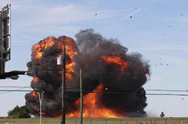 बताया जा रहा है कि बोइंग बी-17 फ्लाइंग फोर्ट्रेस बमवर्षक और बेल पी-63 किंगकोबरा लड़ाकू विमान दोपहर 1:20 बजे डलास कार्यकारी हवाई अड्डे पर विंग्स ओवर डलास एयरशो में टकरा गए और हादसे के शिकार हो गए।