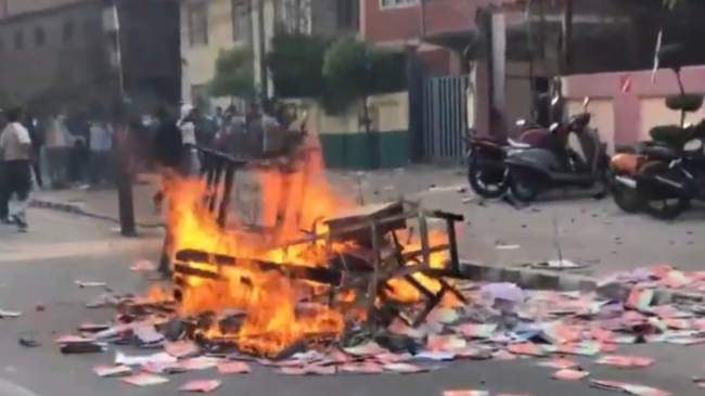 рдмрддрд╛рдпрд╛ рдЬрд╛ рд░рд╣рд╛ рд╣реИ рдХрд┐ рд╣рд┐рдВрд╕рд╛ рдХреА рд╢реБрд░реБрдЖрдд рддрдм рд╣реБрдИ, рдЬрдм рдкреНрд░рджрд░реНрд╢рдирдХрд╛рд░рд┐рдпреЛрдВ рдиреЗ рд╕реБрд░рдХреНрд╖рд╛ рдШреЗрд░рд╛ рддреЛрдбрд╝рдиреЗ рдХреА рдХреЛрд╢рд┐рд╢ рдХреА рдФрд░ рдкрддреНрдерд░ рдлреЗрдВрдХрдиреЗ рд▓рдЧреЗред рд╕реБрд░рдХреНрд╖рд╛рдмрд▓реЛрдВ рдиреЗ рдЙрдЧреНрд░ рднреАрдбрд╝ рдХреЛ рддрд┐рддрд░-рдмрд┐рддрд░ рдХрд░рдиреЗ рдХреЗ рд▓рд┐рдП рдЖрдВрд╕реВ рдЧреИрд╕ рджрд╛рдЧреЗ рдФрд░ рд░рдмреЬ рдмреБрд▓реЗрдЯ рдХрд╛ рдЗрд╕реНрддреЗрдорд╛рд▓ рдХрд┐рдпрд╛ред рдЗрд╕рдХреЗ рдмрд╛рдж рдкреНрд░рджрд░реНрд╢рдирдХрд╛рд░реА рд╣рд┐рдВрд╕рдХ рд╣реЛ рдЧрдП рдФрд░ рдЙрдиреНрд╣реЛрдВрдиреЗ рдмрд┐рдЬрдиреЗрд╕ рдХреЙрдореНрдкреНрд▓реЗрдХреНрд╕, рд╢реЙрдкрд┐рдВрдЧ рдореЙрд▓, рдкрд╛рд░реНрдЯреА рдХреЗ рдореБрдЦреНрдпрд╛рд▓рдп рдФрд░ рдореАрдбрд┐рдпрд╛ рд╣рд╛рдЙрд╕ рдореЗрдВ рдЖрдЧ рд▓рдЧрд╛ рджреАред