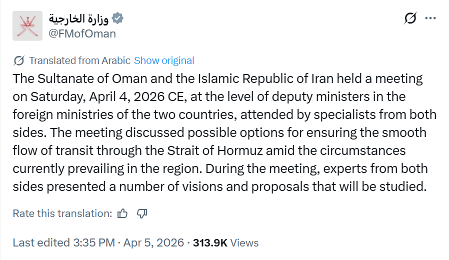 рдУрдорд╛рди рдХреЗ рд╡рд┐рджреЗрд╢ рдордВрддреНрд░рд╛рд▓рдп рдиреЗ рд▓рд┐рдЦрд╛ рд╣реИ, 'рдУрдорд╛рди рд╕рд▓реНрддрдирдд рдФрд░ рдЗрд╕реНрд▓рд╛рдорд┐рдХ рд░рд┐рдкрдмреНрд▓рд┐рдХ рдСрдл рдИрд░рд╛рди рдиреЗ рд╢рдирд┐рд╡рд╛рд░ рдХреЗ рдмреАрдЪ 4 рдЕрдкреНрд░реИрд▓, 2026 рдХреЛ рдмреИрдардХ рд╣реБрдИ. рдмреИрдардХ рдореЗрдВ рджреЛрдиреЛрдВ рджреЗрд╢реЛрдВ рдХреЗ рд╡рд┐рджреЗрд╢ рдордВрддреНрд░рд╛рд▓рдпреЛрдВ рдХреЗ рдбрд┐рдкреНрдЯреА рдорд┐рдирд┐рд╕реНрдЯрд░ рдХреЗ рд▓реЗрд╡рд▓ рдХреА рдереА, рдЬрд┐рд╕рдореЗрдВ рджреЛрдиреЛрдВ рддрд░рдл рдХреЗ рд╕реНрдкреЗрд╢рд▓рд┐рд╕реНрдЯ рд╢рд╛рдорд┐рд▓ рд╣реБрдП. рдореАрдЯрд┐рдВрдЧ рдореЗрдВ рдЦрд╛рдбрд╝реА рдореЗрдВ рдореМрдЬреВрджрд╛ рд╣рд╛рд▓рд╛рдд рдХреЗ рдмреАрдЪ рд╣реЛрд░реНрдореБрдЬ рд╕реНрдЯреНрд░реЗрдЯ рд╕реЗ рдЬрд╣рд╛рдЬреЛрдВ рдХреЗ рдЖрдиреЗ-рдЬрд╛рдиреЗ рдХреЛ рдЖрд╕рд╛рди рдмрдирд╛рдиреЗ рдХреЗ рд▓рд┐рдП рдореБрдордХрд┐рди рдСрдкреНрд╢рди рдкрд░ рдЪрд░реНрдЪрд╛ рд╣реБрдИ. рдореАрдЯрд┐рдВрдЧ рдХреЗ рджреМрд░рд╛рди рджреЛрдиреЛрдВ рддрд░рдл рдХреЗ рдПрдХреНрд╕рдкрд░реНрдЯреНрд╕ рдиреЗ рдХрдИ рд╡рд┐рдЬрди рдФрд░ рдкреНрд░рдкреЛрдЬрд▓ рдкреЗрд╢ рдХрд┐рдП, рдЬрд┐рдирдХрд╛ рдЕрдзреНрдпрдпрди рдХрд┐рдпрд╛ рдЬрд╛рдПрдЧрд╛.'