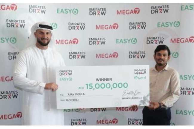 नई दिल्ली: दुबई में रहने वाले भारत के एक ड्राइवर ने अमीरात ड्रॉ में 15 मिलियन दिरहम जीता है। ये 33 करोड़ रुपये के बराबर है। लॉटरी पुरस्कार जीतने के बाद अजय ओगुला ने कहा कि मुझे अभी भी विश्वास नहीं हो रहा है कि मैंने जैकपॉट मारा है।