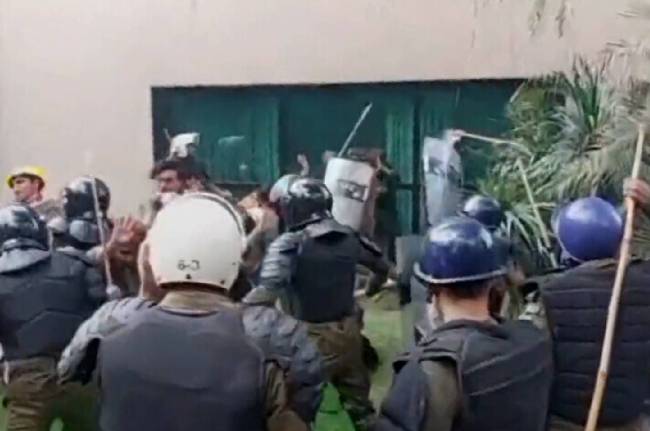 पाकिस्तान तहरीक-ए-इंसाफ (PTI) की ओर से सोशल मीडिया पर पोस्ट किया गया एक वीडियो में लाहौर पुलिस को इमरान खान के समर्थकों पर कार्रवाई करते देखा जा सकता है। वीडियो को इमरान खान के आवास ‘जमान पार्क’ के अंदर का बताया जा रहा है।