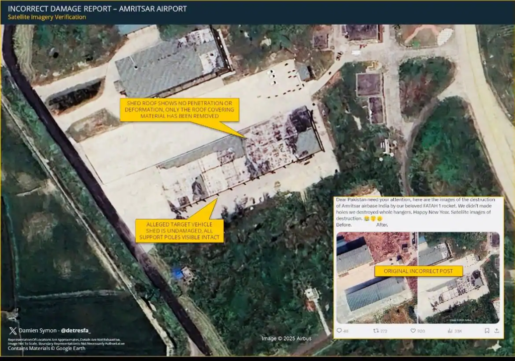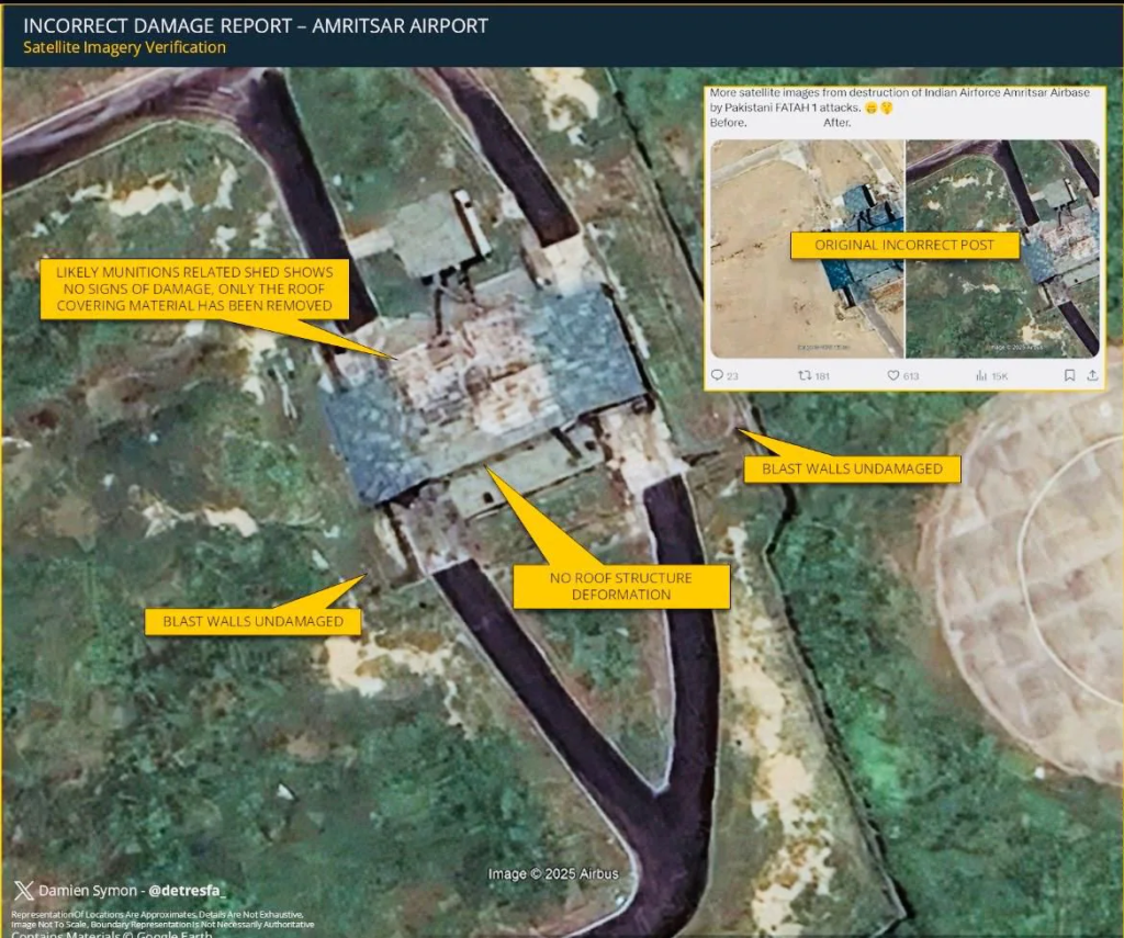 рднрд╛рд░рдд рдХреЗ рдбрд┐рдлреЗрдВрд╕ рдПрдХреНрд╕рдкрд░реНрдЯ рдХреЗ рдореБрддрд╛рдмрд┐рдХ рдЗрди рдирдИ рддрд╕реНрд╡реАрд░реЛрдВ рдореЗрдВ рдЬрд╛рдирдмреВрдЭрдХрд░ рд╕реАрдорд┐рдд рд╣рд┐рд╕реНрд╕реЗ рджрд┐рдЦрд╛рдП рдЧрдП рд╣реИрдВ рдФрд░ рдЙрдирдореЗрдВ рд╣рдорд▓реЗ рдХреЗ рдХреЛрдИ рд╕рд╛рдл рд╕рдВрдХреЗрдд рдирд╣реАрдВ рдорд┐рд▓рддреЗтАФрдЬреИрд╕реЗ рдЧрдбреНрдвреЗ, рдорд▓рдмрд╛, рдЬрд▓реЗ рд╣реБрдП рдирд┐рд╢рд╛рди рдпрд╛ рдврд╛рдВрдЪреЗ рдХреЛ рд╣реБрдЖ рдиреБрдХрд╕рд╛рди. рдЙрд╕реА рдЬрдЧрд╣ рдХреА рдкреБрд░рд╛рдиреА рдФрд░ рдирдИ рддрд╕реНрд╡реАрд░реЛрдВ рдХреА рддреБрд▓рдирд╛ рдХрд░рдиреЗ рдкрд░ рдХреЛрдИ рдмрджрд▓рд╛рд╡ рдирдЬрд░ рдирд╣реАрдВ рдЖрддрд╛.