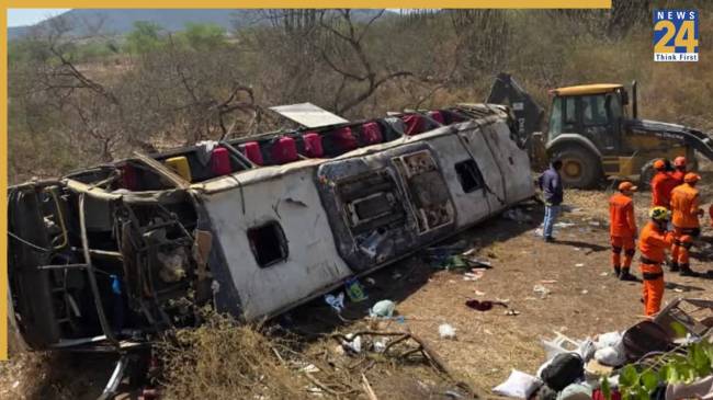 Bus Accident in Brazil: ब्राजील देश में भीषण सड़क हादसा हुआ है, जिसमें 15 लोगों की जान चली गई है. हादसा नॉर्थ-ईस्ट ब्राजील में अलागोआस स्टेट के ग्रामीण इलाके में हुआ. 60 श्रद्धालुओं से भरी बस मोड़ काटते हुए सड़क से उतरकर पलट गई. हादसे में बच्चों-महिलाओं समेत 15 लोगों की मौत हुई है. बस पलटने पर कुछ लोग निकल बाहर गिर गए और कुछ बस के नीचे दब गए. बचाव दल ने बस को क्रेन से सीधा करके घायलों को बाहर निकाला.