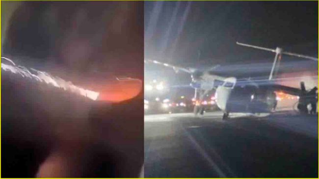 ---विज्ञापन---बताया गया कि एक पहिये पर उतरा विमान।। कुछ यात्री मामूली रुप से घायल बताए गए हैं।