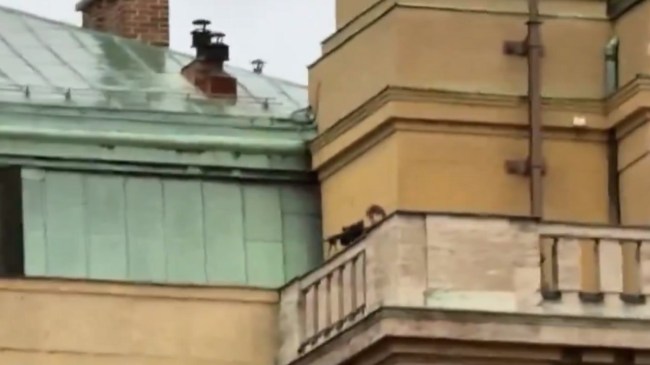 New video shows gunman shooting at people from a rooftop at Charles UniversityтАЩs Department of Philosphy in Prague, Czech Republic. Over 15 killed and 20 injured in the mass shooting. 10 critically injured. Shooter also killed his own father.