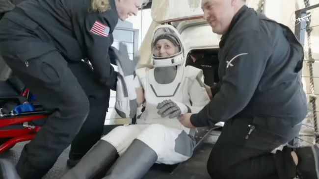 अंतरिक्ष यात्री भारतीय समय के मुताबिक बुधवार तड़के 3:27 बजे धरती पर लौटे हैं। जैसे ही वह कैप्सूल से उतरे, उनको तुरंत स्ट्रेचर से ले जाया गया। दरअसल, ये यात्री बीमार नहीं थे, बल्कि स्पेसएक्स ने एहतियात के तौर पर ऐसा किया। लंबे समय के अंतरिक्ष मिशन से लौटने वाले सभी अंतरिक्ष यात्रियों के लिए यह एहतियात बरती जाती है। इसके अलावा, जैसे ही कैप्सूल फ्लोरिडा के तल्हासी के तट पर उतरा, उस दौरान कई डॉल्फिन इसके चारों ओर तैरती हुई दिखाई दीं। पानी में कैप्सूल के चारों ओर चक्कर लगाते हुए कम से कम 5 डॉल्फिन को वीडियो कैद किया गया है।