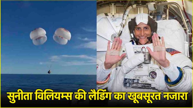 9 महीनों के लंबे इंतजार के बाद आखिरकार वो दिन आ ही गया जब भारत की बेटी सुनीता विलियम्स की धरती पर वापसी हो गई है। अंतरिक्ष यात्रियों की वापसी स्पेसएक्स कैप्सूल के जरिए हुई। सुनीता अंतरराष्ट्रीय अंतरिक्ष स्टेशन से निकलने के कुछ ही घंटों बाद 19 मार्च, 2025 को मेक्सिको की खाड़ी में पैराशूट लैंड हुईं। नासा यात्रियों का कैप्सूल फ्लोरिडा के तल्हासी तट पर स्पलैशडाउन हुआ। अंतरिक्ष यात्रियों की लैंडिंग का वीडियो भी सामने आ गया है जो स्पेस एजेंसी की ओर से जारी किया गया है।