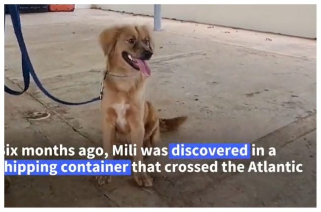 VIDEO: Mili the dog sniffs suitcases at a Panama dog training centre Just six months before, Mili was discovered in a shipping container that had crossed the Atlantic from Spain in a 40-day journey, without getting any water or food other than rainwater. pic.twitter.com/1nxNjXi2HL