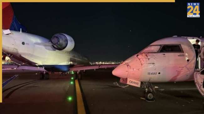 इस घटना के वीडियो और फोटो सोशल मीडिया पर वायरल हो रहे हैं. एबीसी न्यूज ने एयर ट्रैफिक कंट्रोल (एटीसी) के हवाले से बताया कि बुधवार शाम को न्यूयॉर्क के लागार्डिया हवाई अड्डे पर टैक्सी करते समय दो डेल्टा जेट विमान टकरा गए, जिससे एक व्यक्ति घायल हो गया. एक विमान का दाहिना पंख दूसरे विमान के अगले हिस्से से टकराया.