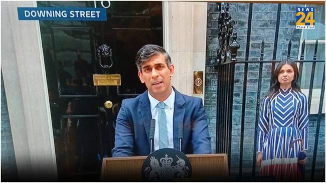 Akshata Murthy News: ऋषि सुनक ने हार के बाद प्रधानमंत्री के पद से इस्तीफा दे दिया है। जब उन्होंने अपने इस्तीफे का ऐलान किया, पत्नी अक्षता मूर्ति पीछे खड़ी थीं। त्यागपत्र भाषण का ये वीडियो सोशल मीडिया पर जबरदस्त वायरल हो रहा है। इस वीडियो में अक्षत 42 हजार की भारतीय लेबल ड्रेस में दिख रही हैं। जो ऑनलाइन मजाक का पात्र बन गई हैं। अक्षता ने जो हाई नेक ड्रेस डाली हुई है, वह लाल, सफेद और नीले रंग की पट्टियों से डिजाइन की गई है।