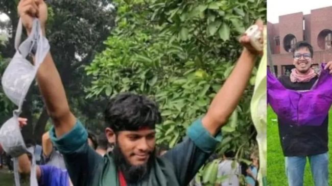 उपद्रवियों की एक वीडियो जो इस समय सोशल मीडिया पर लोगों के बीच बहस का मुद्दा बनी हुई है। ये वह वीडियो है जिसमें प्रदर्शनकारी पूर्व पीएम के सरकारी आवास पर अंडरगारमेंट्स को हवा में लहराते और जश्न मनाते दिख रहे हैं। सोशल मीडिया पर एक नहीं ऐसी कई वीडियो वायरल हो रही हैं जिसमें प्रदर्शनकारी शेख हसीना की साड़ी पहनें, सरकारी आवास में ब्लाउज और ब्रा हाथ में लहराते और शोर मचाते नाच रहे हैं।
