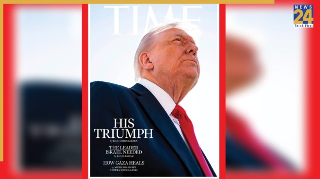 рд╣рд╛рд▓рд╛рдВрдХрд┐ рдЯрд╛рдЗрдо рдореИрдЧрдЬреАрди рдХреЗ рдХрд╡рд░ рдкрд░ рд▓рдЧреА рддрд╕реНрд╡реАрд░ рдореЗрдВ рд░рд╛рд╖реНрдЯреНрд░рдкрддрд┐ рдЯреНрд░рдВрдк рдЖрддреНрдорд╡рд┐рд╢реНрд╡рд╛рд╕ рд╕реЗ рдЖрдЧреЗ рджреЗрдЦрддреЗ рд╣реБрдП рджрд┐рдЦ рд░рд╣реЗ рд╣реИрдВ рдФрд░ рдЗрд╕рдХрд╛ рд╢реАрд░реНрд╖рдХ рд╣реИ- рд╣рд┐рдЬ рдЯреНрд░рд╛рдпрдореНрдл рдпрд╛рдиреА рдХрд┐ рдЙрдирдХреА рд╡рд┐рдЬрдп.