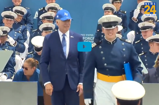 अमेरिकी राष्ट्रपति बाइडेन ने सेरेमनी में एक कैडेट से हाथ मिलाया। कैडेट ने उन्हें सलामी दी। इसके बाद बाइडेन अपनी सीट पर बैठने के लिए मंच से निकले। लेकिन उनका एक पैर सैंडबैग में फंस गया और वे अपना संतुलन खो बैठ गए। फिर फर्श पर गिर पड़े। वायु सेना के एक अधिकारी और यूएस सीक्रेट सर्विस के दो सदस्यों ने तुरंत उनकी मदद की।