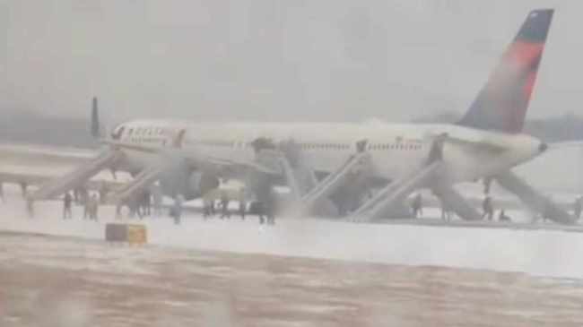 ---विज्ञापन---Atlanta Hartsfield International Airport पर उड़ान भरने से ठीक पहले Delta Airlines के इस विमान के एक इंजन में आग का अलर्ट आया। रनवे पर दौड़ रहे विमान को इमरजेंसी ब्रेकिंग के ज़रिए रोका गया और मुसाफ़िरों को स्लाइड कर विमान से उतारा गया pic.twitter.com/rdN4r2U5je
