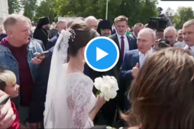 During a visit to Kronstadt, Putin had a peculiar encounter. Among the people who wanted to take a picture with the president was a bride pic.twitter.com/KrOL2Y4roE